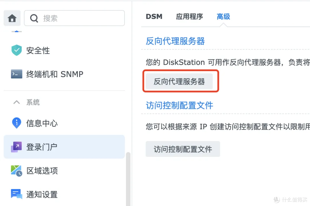 接下来演示进行反向代理的配置,打开控制面板->高级->反向代理服务器